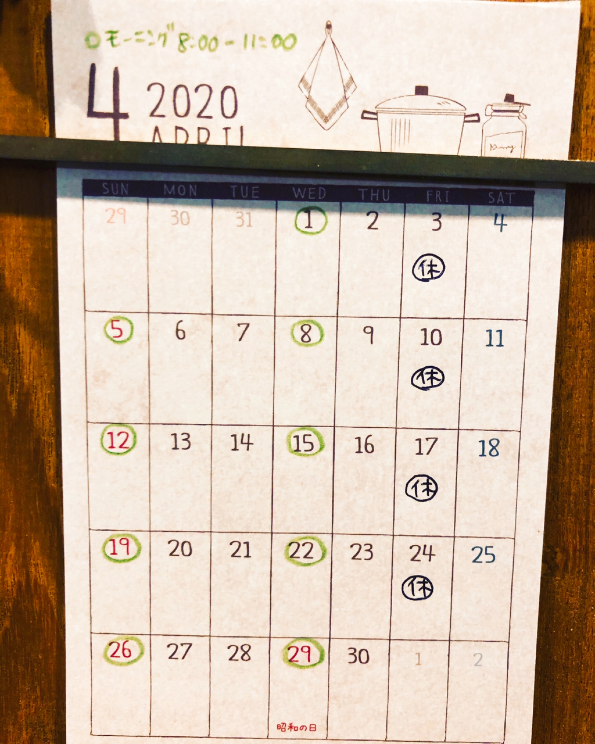 4/1(水)、5(日)、8(水)、12(日)、15(水)、19(日)、22(水)、26(日)、29(水)