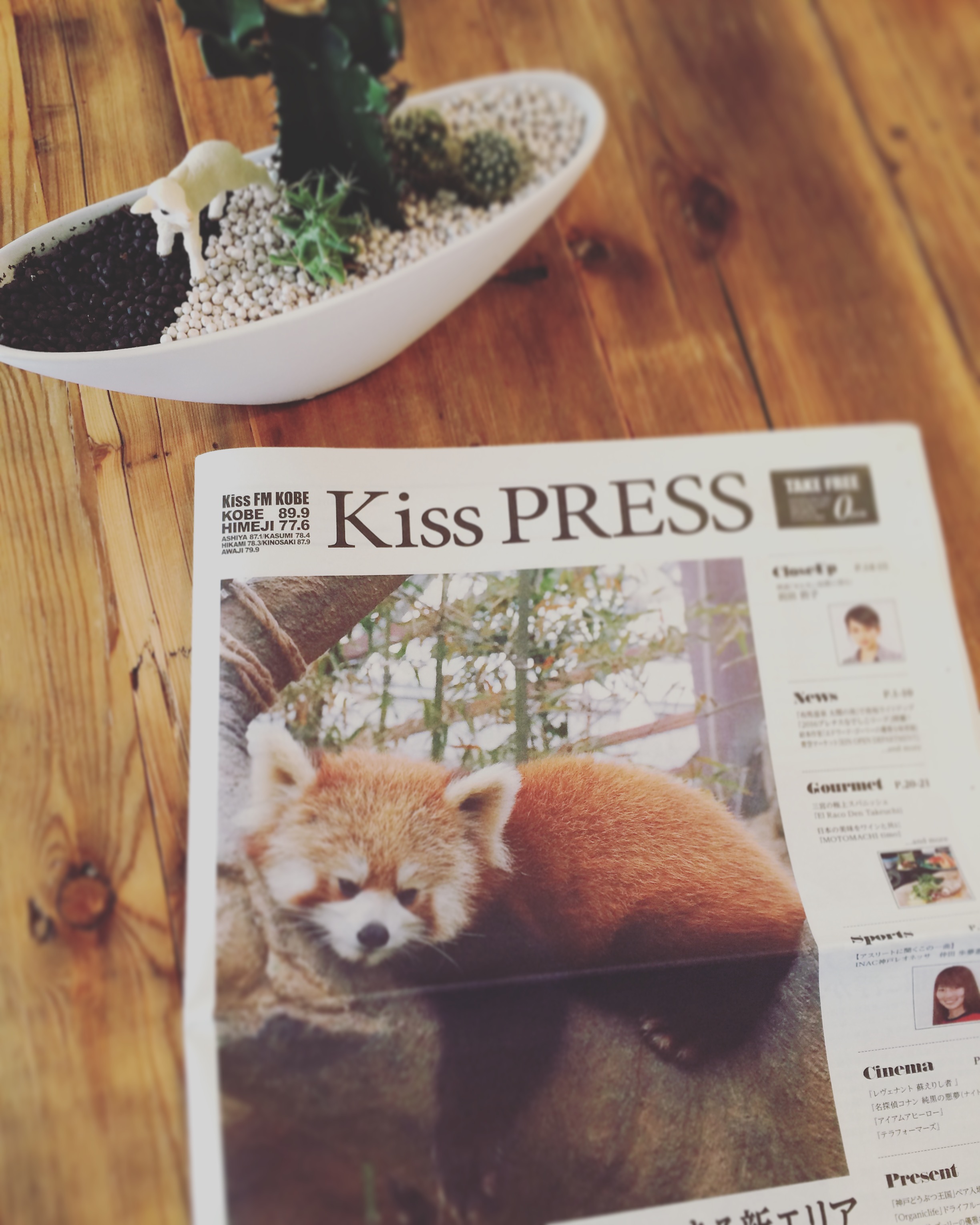 KissFM神戸さんのフリーペーパーKiss PRESSに掲載して頂きました♫ by upe on 2016年4月7日 kissFM神戸さんのフリーペーパー [Kiss PRESS]のグルメコーナーで upeを掲載して頂きました^ ^ ありがとうございましたー♫ 表紙のレッサーパンダも可愛いです(笑) CD屋さんとかにあるかもしれません^ ^ ぜひ、見かけた際にはお手に取ってみてくださいねー♫
