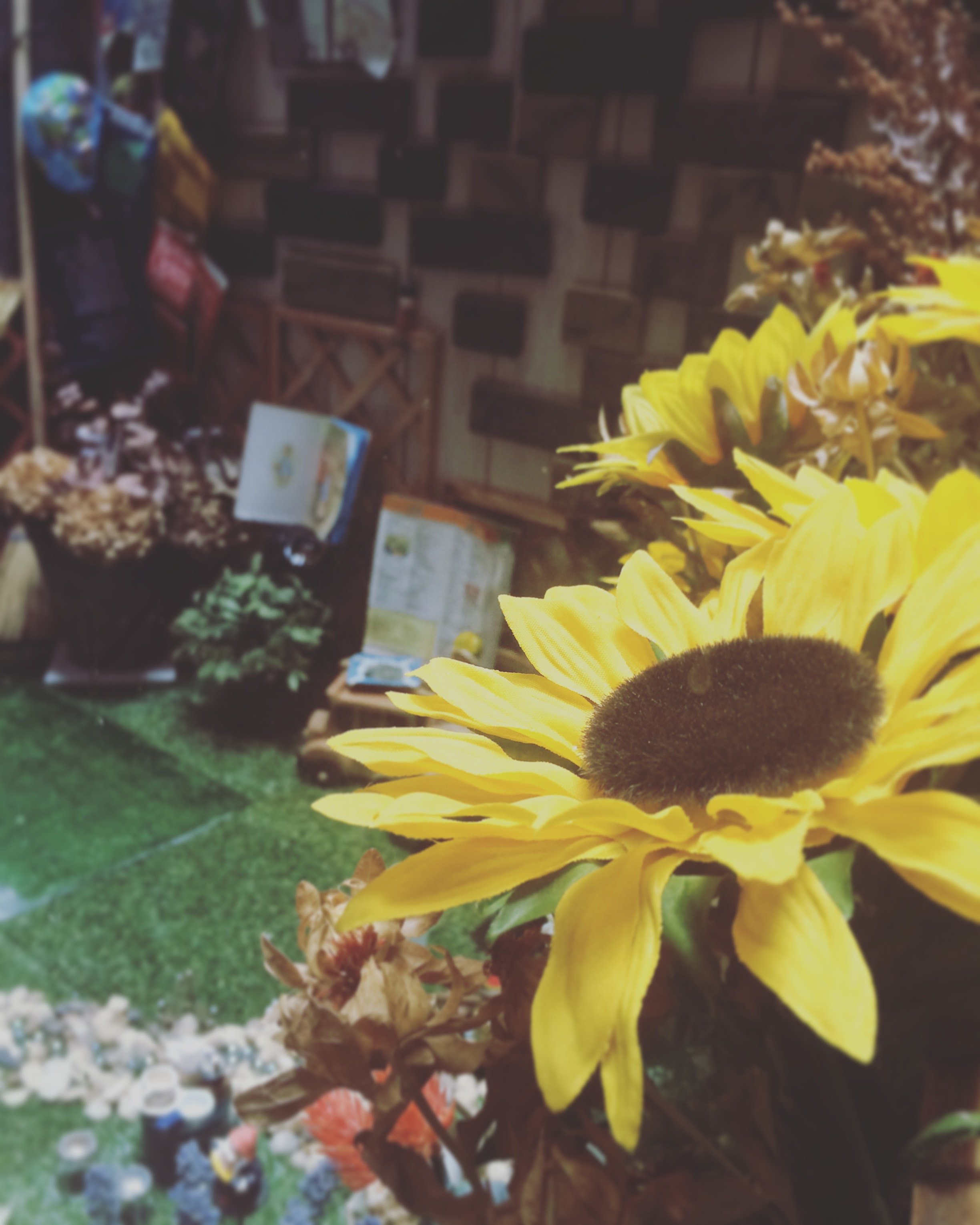 外は雨模様。 小さな中庭には 向日葵が咲いてますよ✴︎